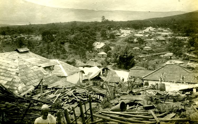 Tezpur 8 July 1897. I went out this morning to see what I could in the way of things thrown down by the earthquake, but I could not find much. The east end of the church has been knocked out and some buildings are badly cracked, but none have come down entirely.