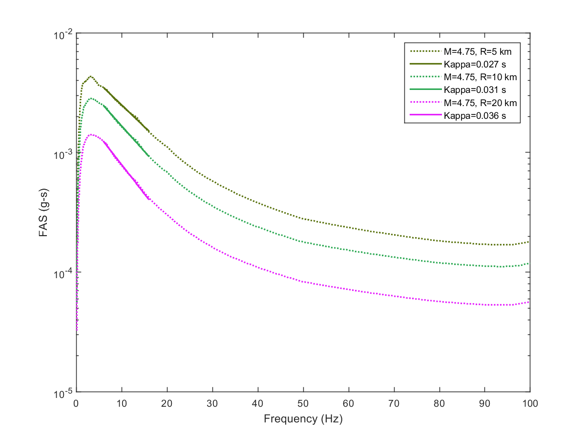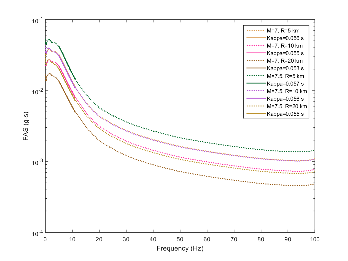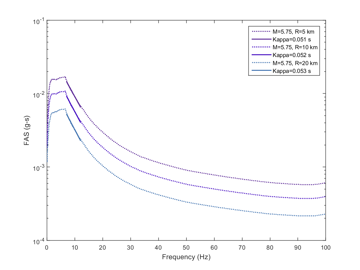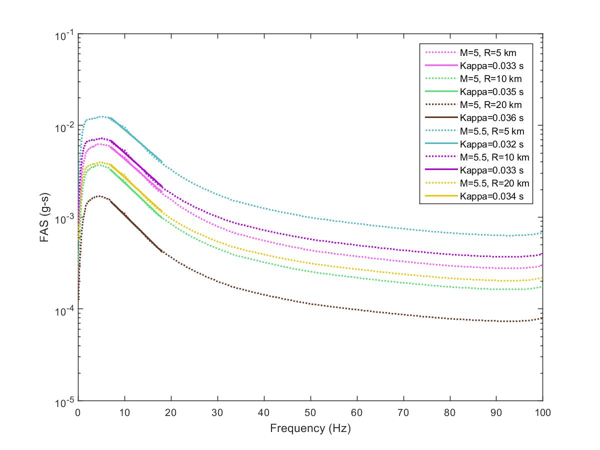 This electronic supplement contains the plots of the Fourier amplitude spectra (FAS) derived from the pseudoacceleration response spectra (PSA) predicted from the Next Generation Attenuation-West2 project (NGA-West2) ground-motion prediction equations (GMPEs) by inverse random vibration theory (IRVT), along with the range of frequencies used to determine κ0. The FAS plots are provided for individual NGA-West2 GMPEs and for the geometric mean of NGA-West2 GMPEs with and without the Boore et al. (2014) GMPE (BSSA14). The estimated κ0 for geometric mean of NGA-West2 GMPEs with and without BSSA14 are provided in this electronic supplement, as are the random-effects results for models 1–4, discussed in the main article.