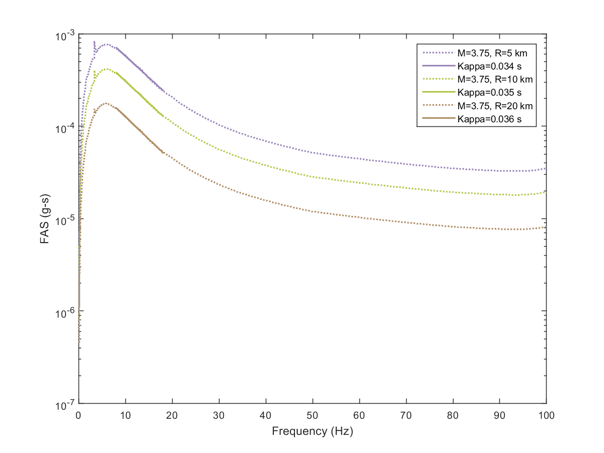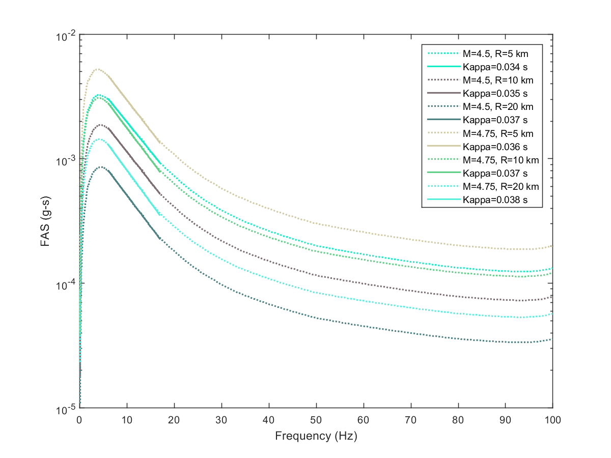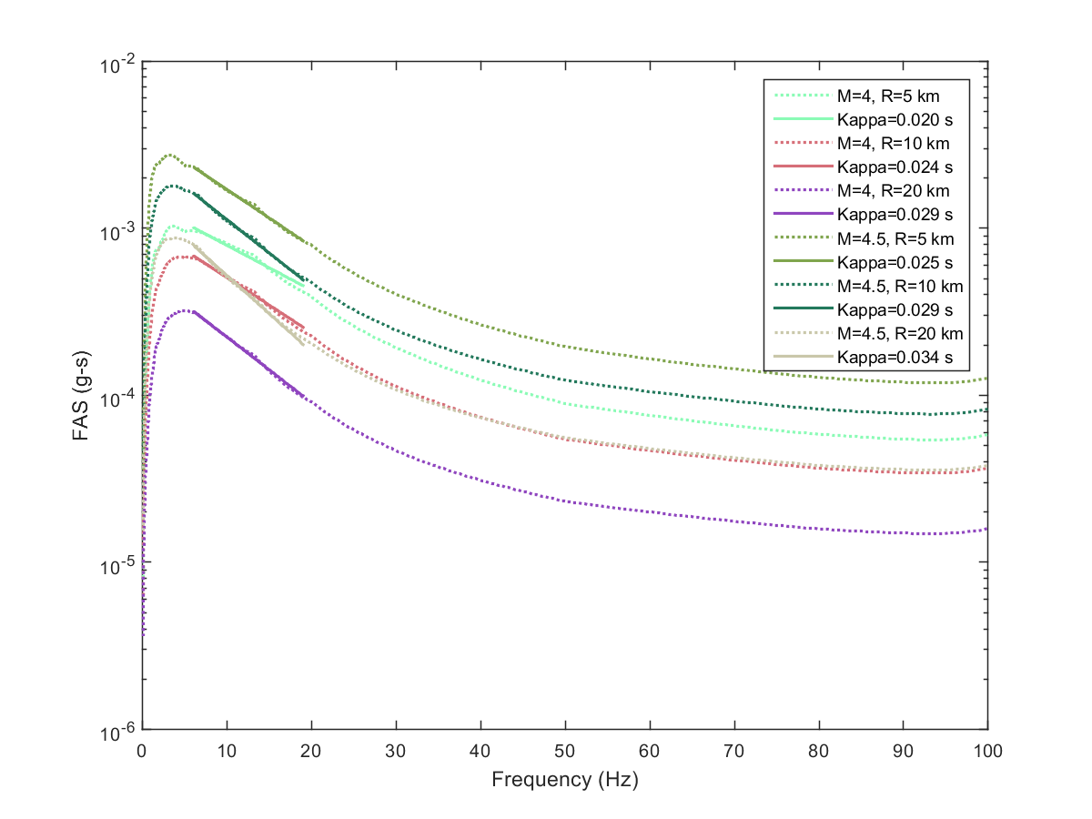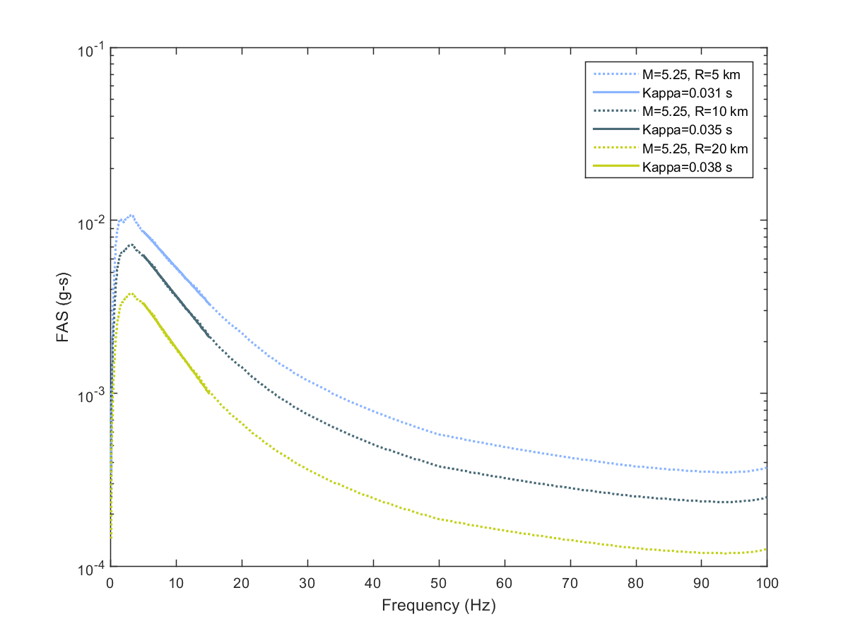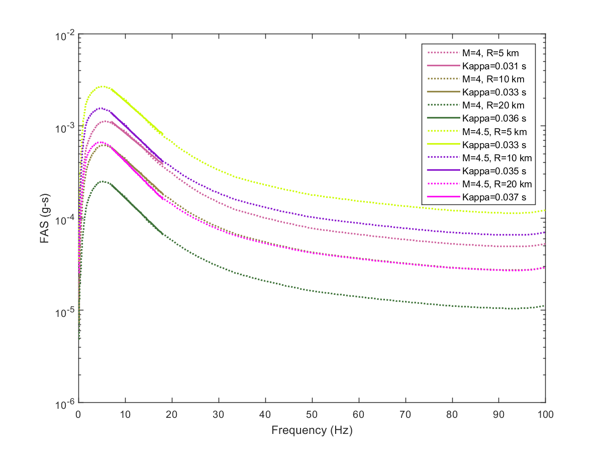 This electronic supplement contains the plots of the Fourier amplitude spectra (FAS) derived from the pseudoacceleration response spectra (PSA) predicted from the Next Generation Attenuation-West2 project (NGA-West2) ground-motion prediction equations (GMPEs) by inverse random vibration theory (IRVT), along with the range of frequencies used to determine κ0. The FAS plots are provided for individual NGA-West2 GMPEs and for the geometric mean of NGA-West2 GMPEs with and without the Boore et al. (2014) GMPE (BSSA14). The estimated κ0 for geometric mean of NGA-West2 GMPEs with and without BSSA14 are provided in this electronic supplement, as are the random-effects results for models 1–4, discussed in the main article.