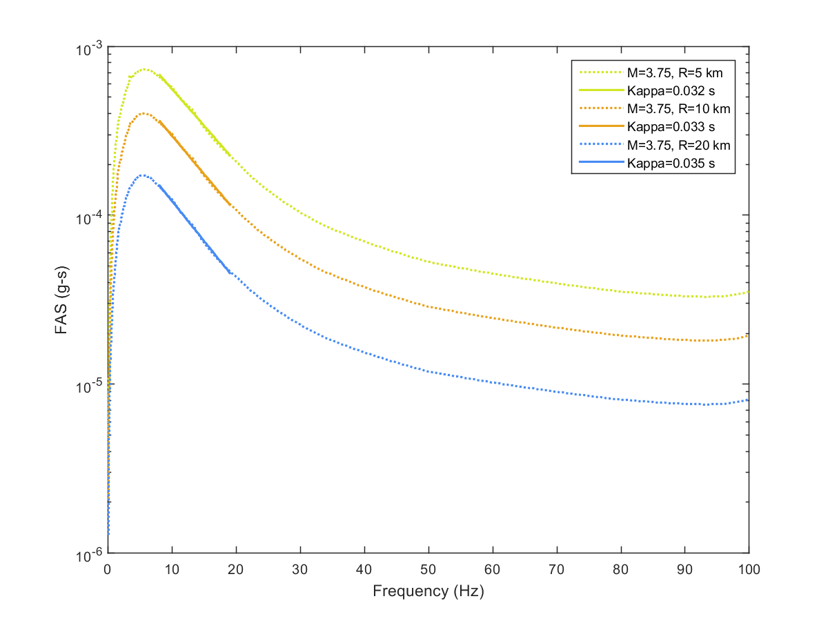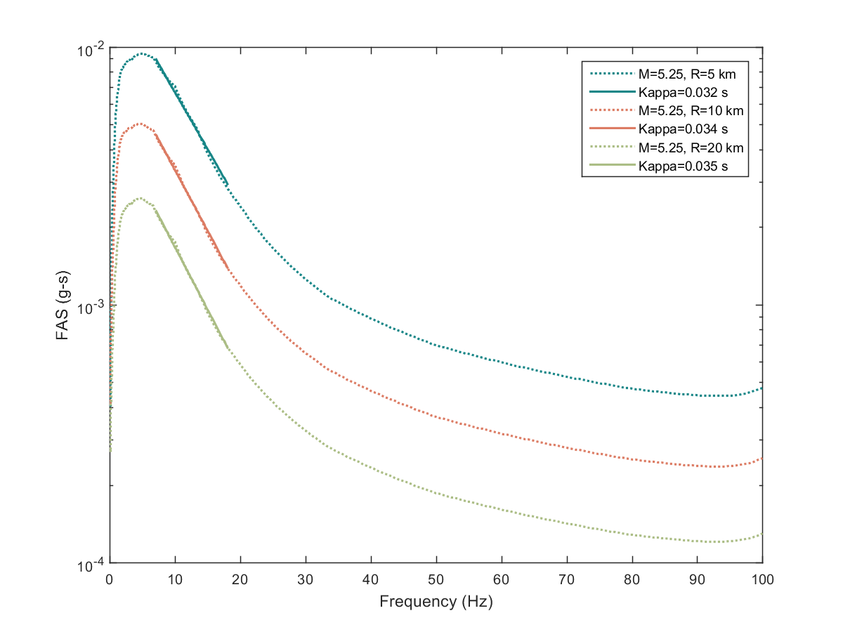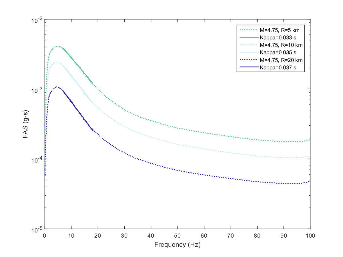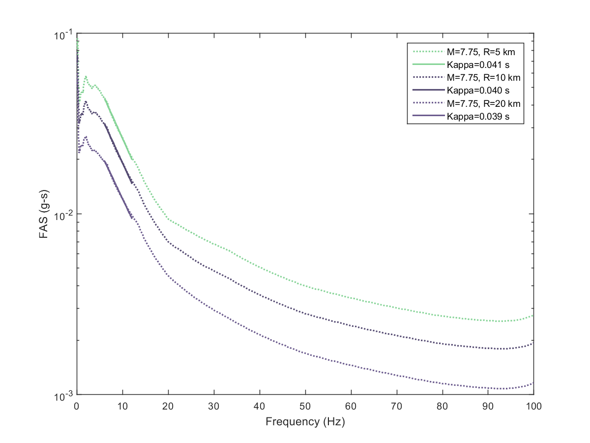 This electronic supplement contains the plots of the Fourier amplitude spectra (FAS) derived from the pseudoacceleration response spectra (PSA) predicted from the Next Generation Attenuation-West2 project (NGA-West2) ground-motion prediction equations (GMPEs) by inverse random vibration theory (IRVT), along with the range of frequencies used to determine κ0. The FAS plots are provided for individual NGA-West2 GMPEs and for the geometric mean of NGA-West2 GMPEs with and without the Boore et al. (2014) GMPE (BSSA14). The estimated κ0 for geometric mean of NGA-West2 GMPEs with and without BSSA14 are provided in this electronic supplement, as are the random-effects results for models 1–4, discussed in the main article.